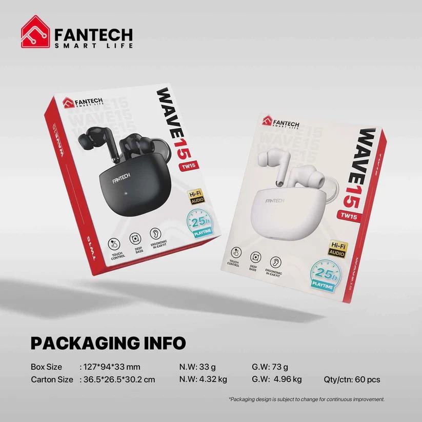 Fantech WAVE15 TW15 dirancang untuk Anda yang mencari TWS dengan keseimbangan antara kualitas audio high-fidelity dan kenyamanan penggunaan jangka panjang. Dengan desain semi-in-ear yang ergonomis, TW15 memberikan pengalaman mendengarkan musik yang imersif tanpa menekan kanal telinga secara berlebihan.