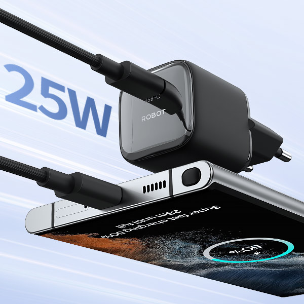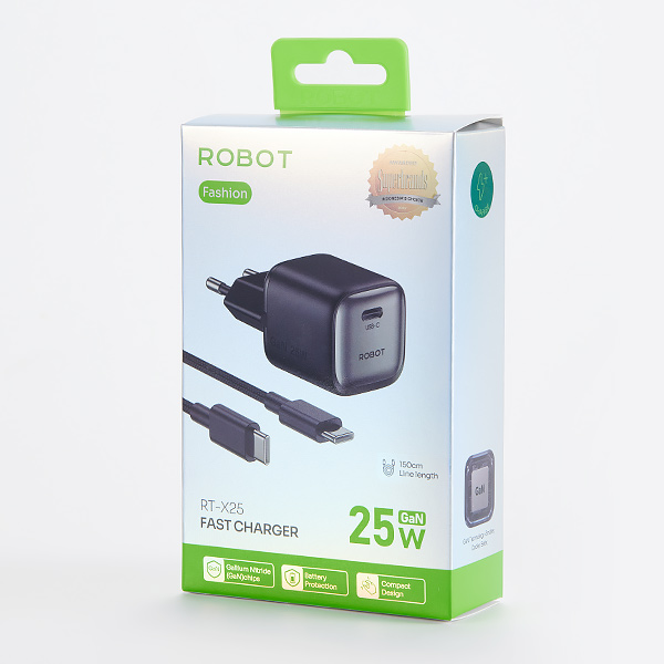 ROBOT Fashion Series Mini GaN Charger 25W RT-X25 adalah pengisi daya mini yang dirancang untuk kebutuhan Anda. Dilengkapi dengan kabel anyaman 1.5m, charger ini memberikan kenyamanan dalam penggunaan. Warna hitam menambah kesan elegan.