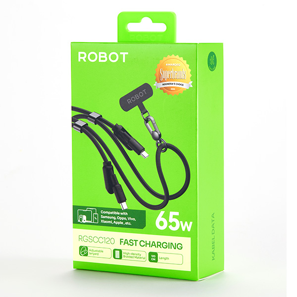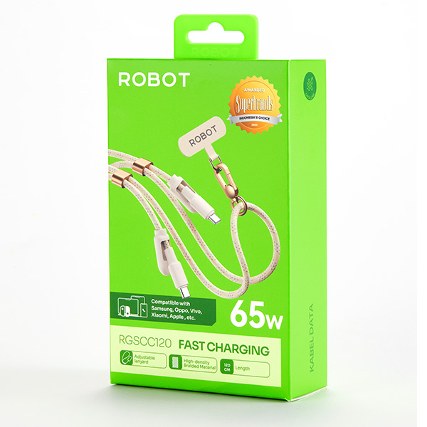 Kabel data ROBOT RGSCC120 adalah kabel data tipe-C ke tipe-C dengan panjang 120CM. Kabel ini memiliki daya 65W dan arus 3A. Cocok untuk mengisi daya dan transfer data ponsel.