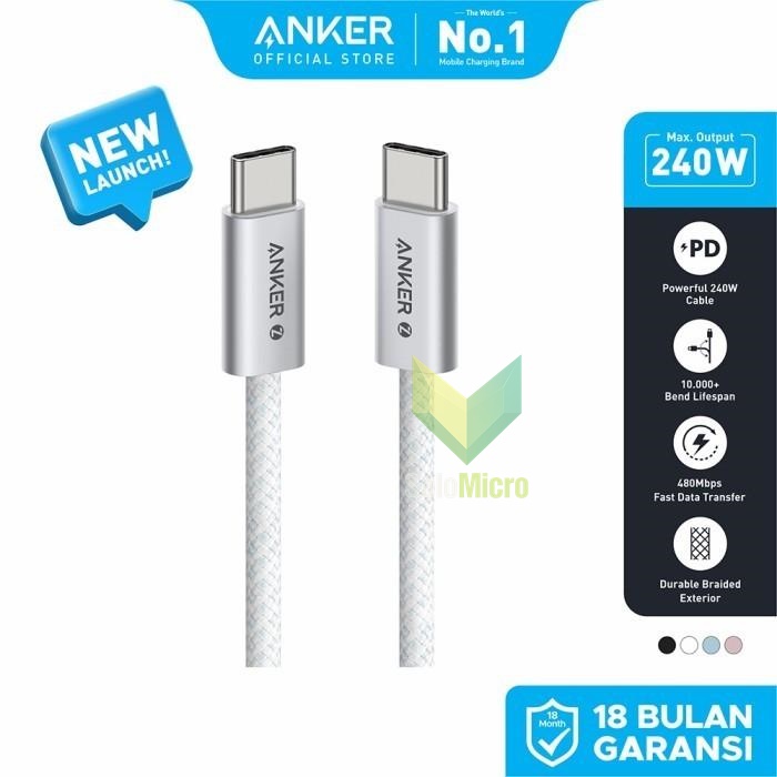 Kabel Anker Zolo USB-C to USB-C (3.3 ft, 240W, Braided) adalah kabel pengisi daya cepat yang dirancang untuk daya tahan dan pengiriman daya tinggi hingga 240W.