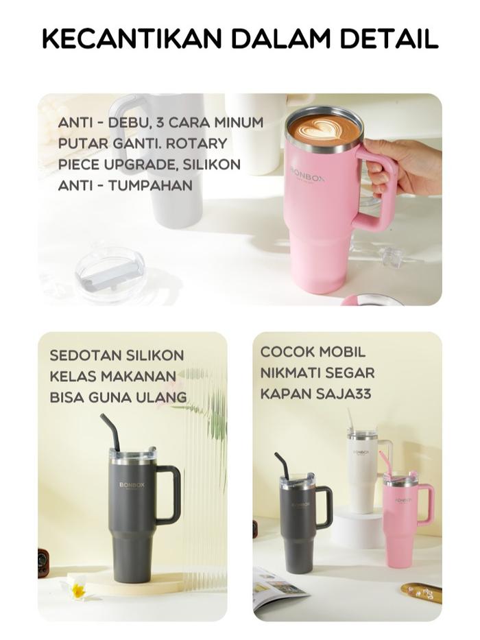 Isi paket: 1 x Tumbler Termos BONBOX BTE41206, 1 x Panduan Perawatan