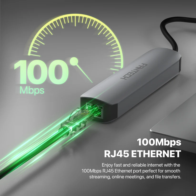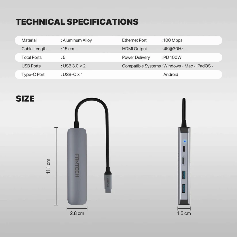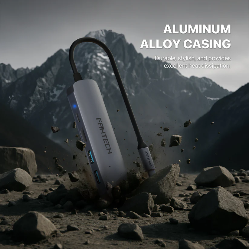 - FANTECH HC051 Converter USB Hub Type C 5in1 menawarkan LAN 100 Mbps dan PD100W untuk pengisian cepat.