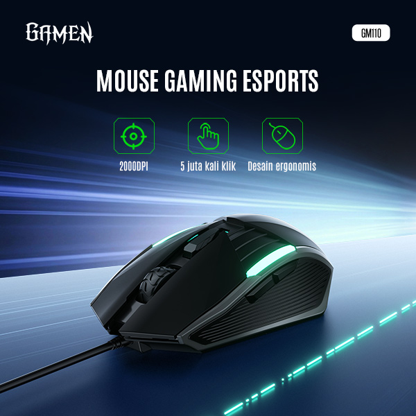 Desainnya yang ergonomis membuat mouse nyaman digunakan dalam waktu lama tanpa menyebabkan pegal pada tangan. Dilengkapi dengan tombol yang responsif serta build quality yang kokoh, GAMEN GM110 siap menjadi partner terbaik untuk aktivitas gaming maupun kerja.