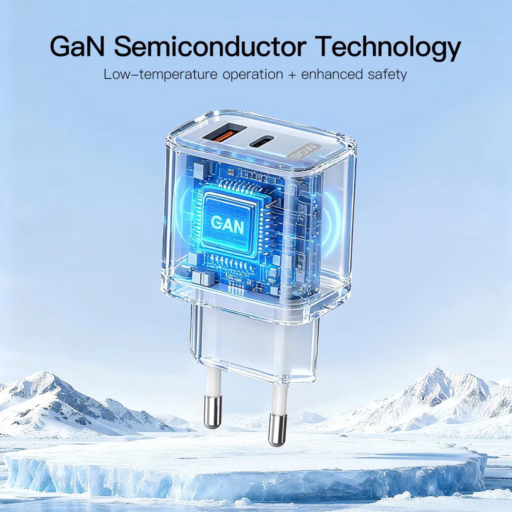 Teknologi: GaN (Gallium Nitride) — membuat adaptor lebih efisien, tetap dingin, dan lebih kecil dari charger konvensional