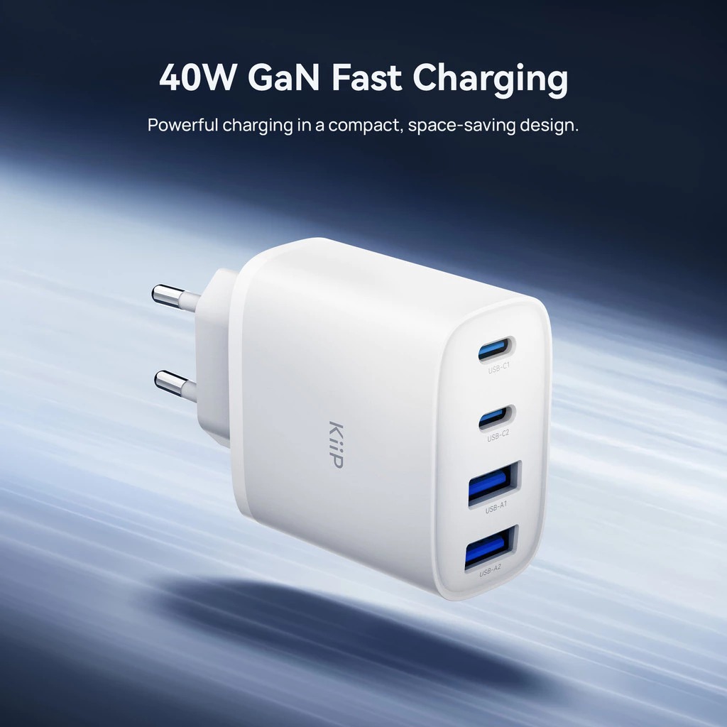 Pengisian cepat 40W dengan teknologi GaN, berukuran kecil dan hemat tempat.