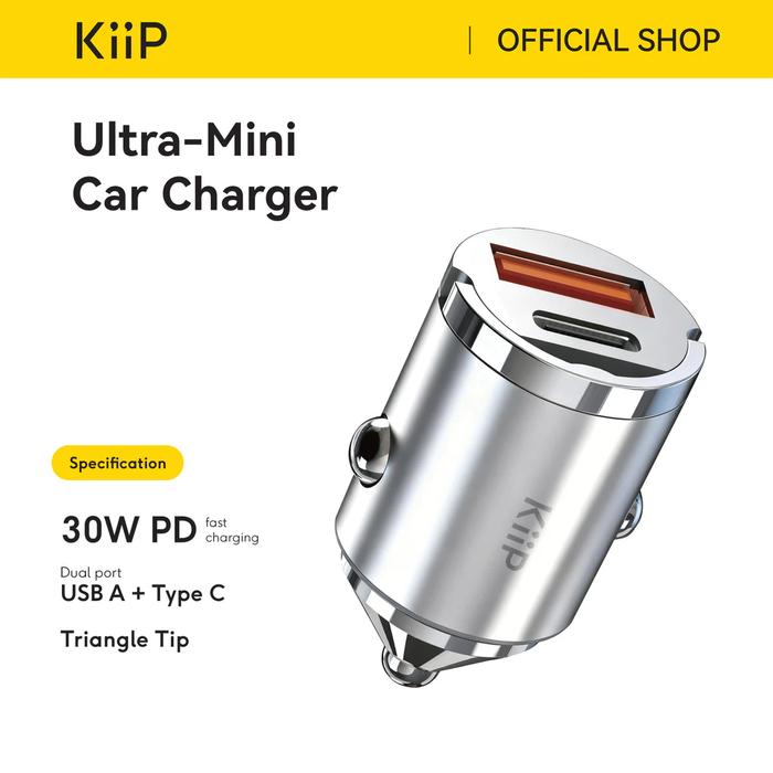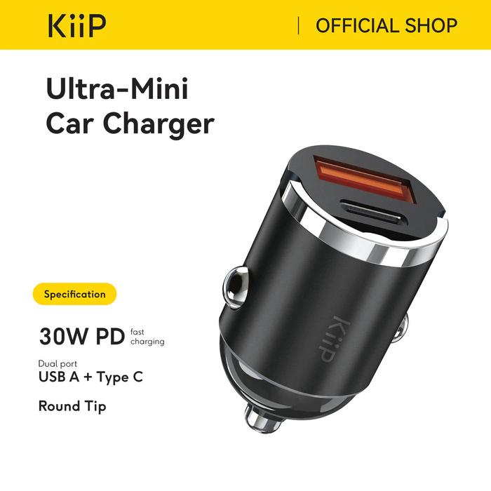 1* KiiP Mini Car Charger 30W Dual Port USB-A + Type C PD Fast Charging