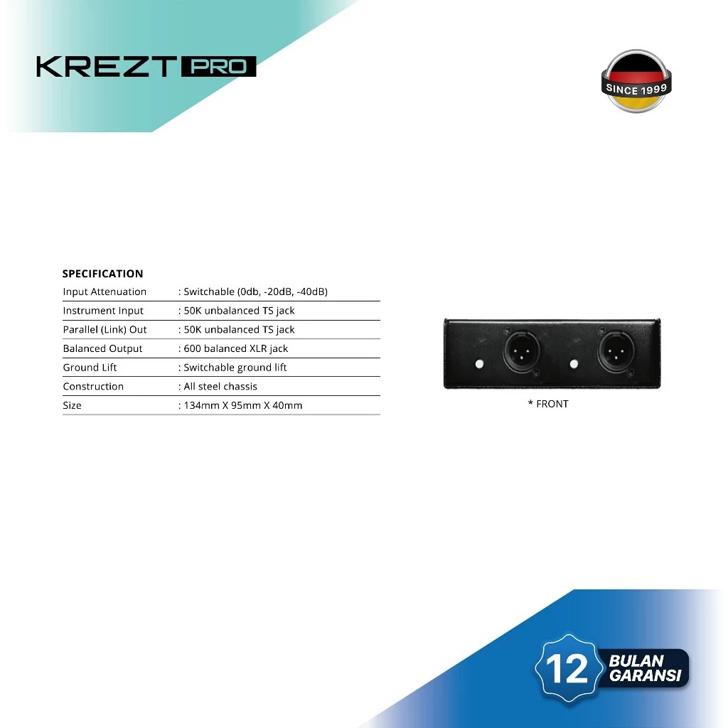 KREZT PRO DB-02 adalah pilihan tepat untuk transmisi sinyal instrumen. Dengan fitur unbalanced dan high impedance, produk ini memberikan kualitas yang diharapkan. Cocok untuk penggunaan profesional.