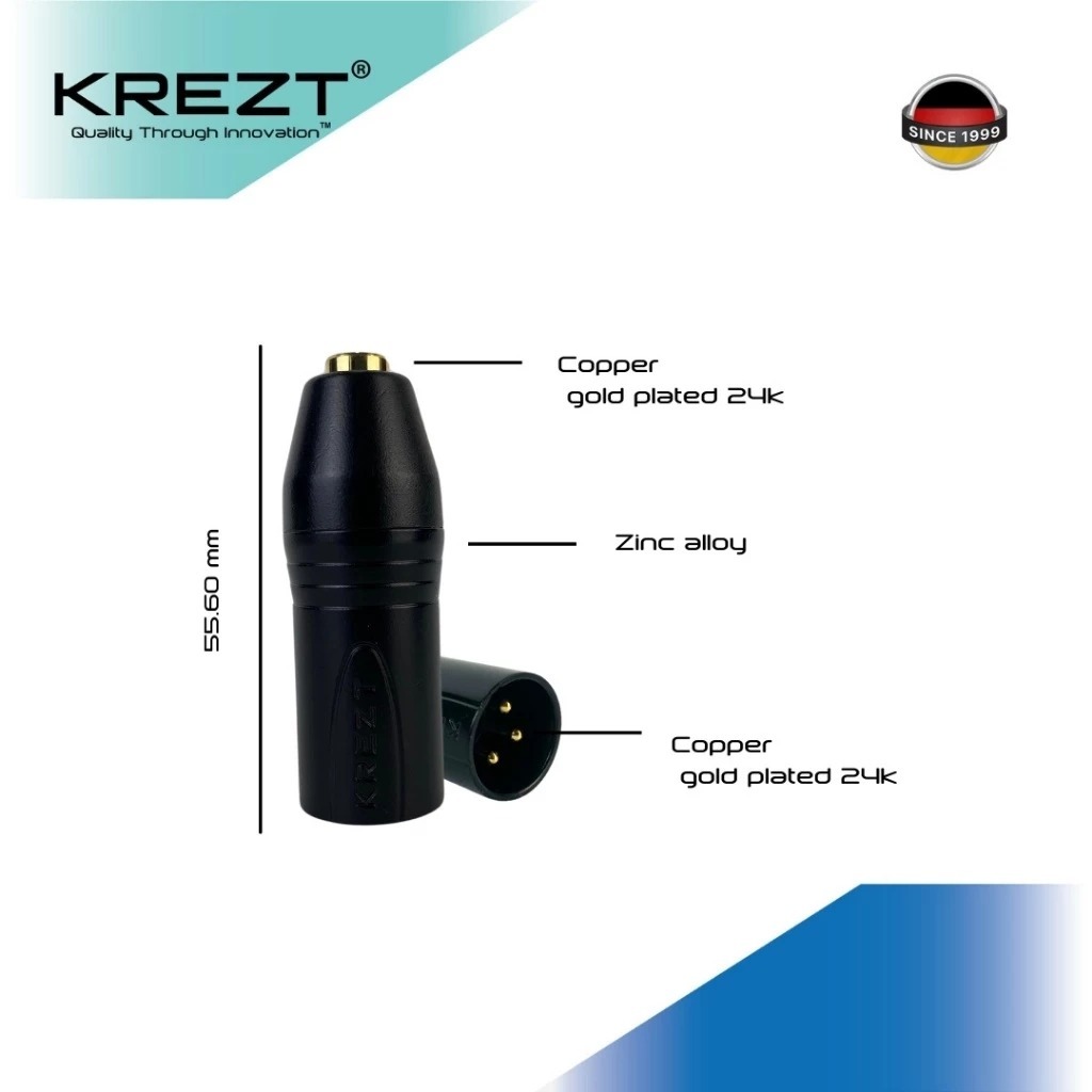 ✨ Adapter Converter Audio KREZT TE-010 KZT adalah adapter audio yang menghubungkan port 3.5mm jantan ke port XLR jantan. Cocok untuk mixer audio. Warna hitam.