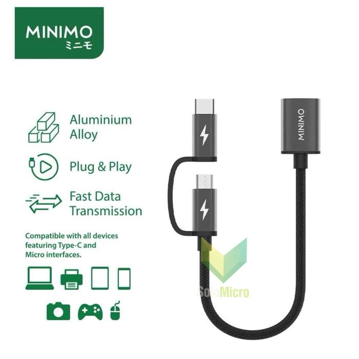 MINIMO OSA02-CM adalah solusi praktis dan ringkas untuk menghubungkan berbagai periferal USB standar (USB-A male) ke perangkat seluler Anda yang memiliki port Micro USB atau USB Type-C. Adaptor multifungsi 2-in-1 ini menghilangkan kebutuhan untuk membawa dua adaptor terpisah, menjadikannya aksesori perjalanan yang ideal.