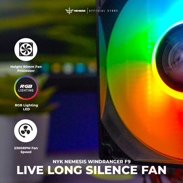 NYK NEMESIS Windranger F9 is a RGB fan processor that have high performance single fan, long live , silence sound and beautiful RGB LED lighting that makes your case more cool and beautiful at the same time. This fan support 2 Heat Pipes and have height 90mm.