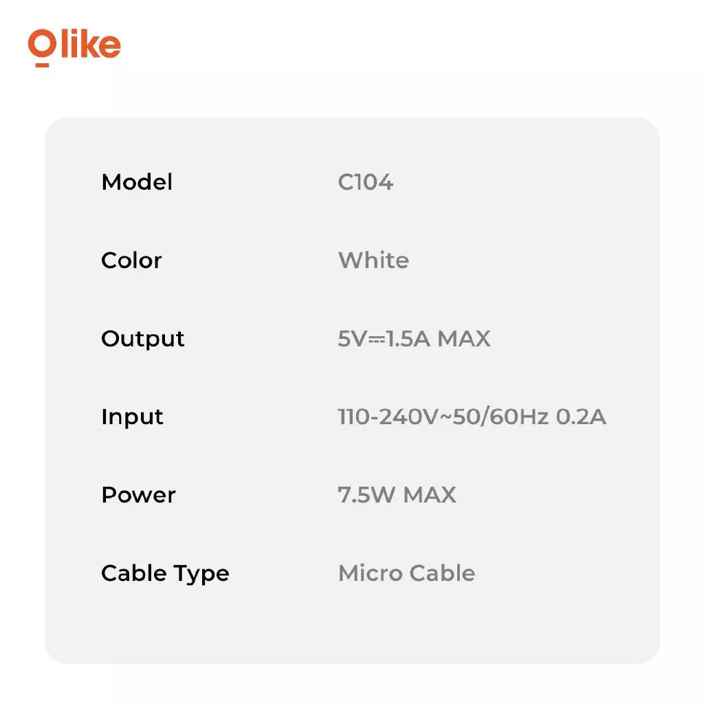 Olike Charger Kepala Adaptor Fast Charging 5V/1.2A Smart Protection C104