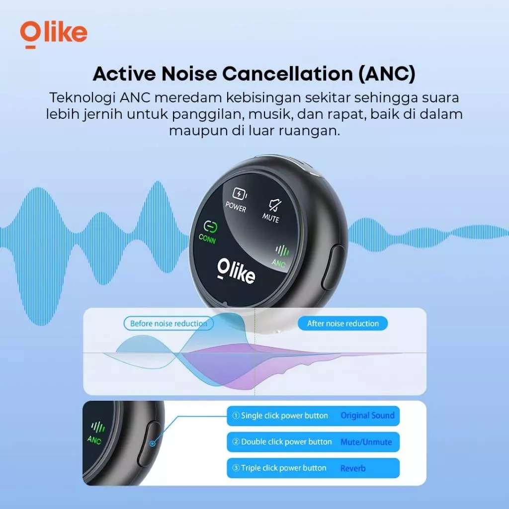 Active Noise Cancellation (ANC): Teknologi ANC membantu meredam kebisingan sekitar sehingga suara lebih jelas saat telepon, meeting, maupun mendengarkan musik.