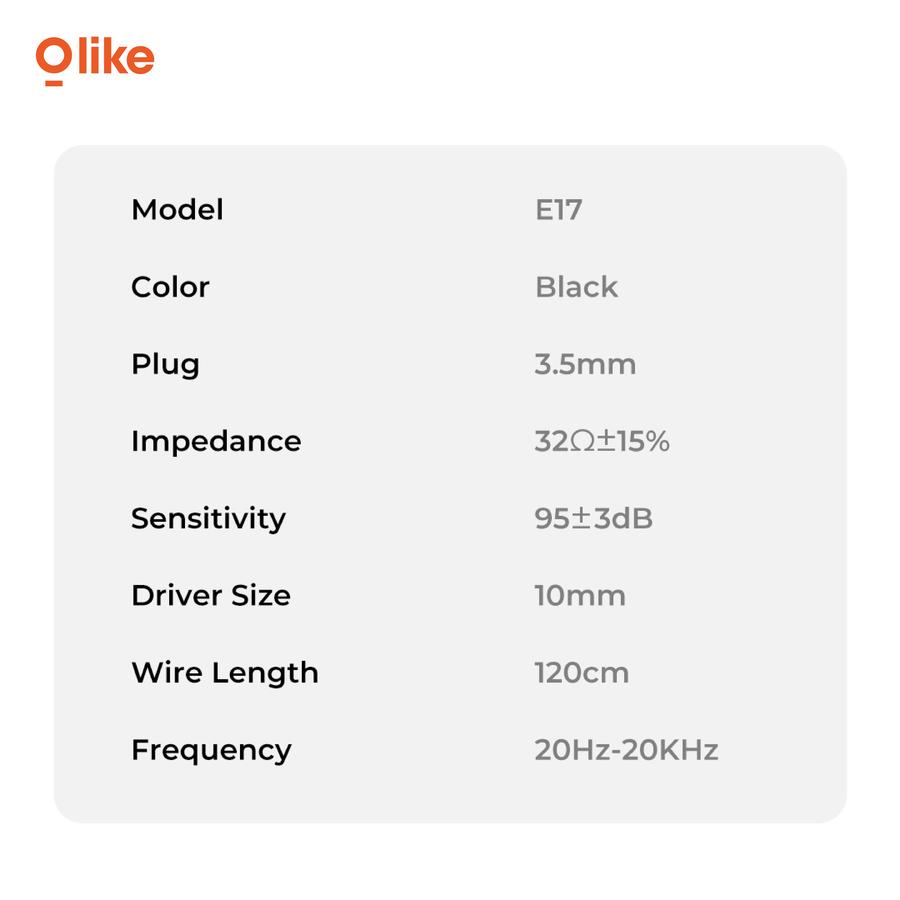 OLIKE E17 Wired Earphone | Jack 3.5mm | 10mm Driver | HD Audio & Stereo Bass