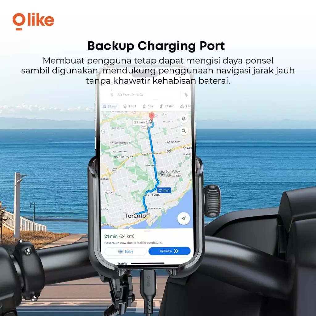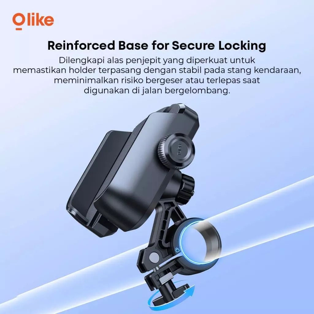 Reinforced Base: Dilengkapi sistem pengunci yang diperkuat sehingga holder lebih stabil dan tidak mudah bergeser meskipun melewati jalan bergelombang.