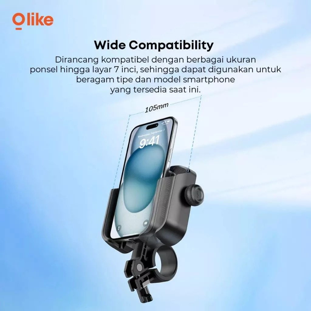 Wide Compatibility: Mendukung berbagai ukuran smartphone hingga lebar ±105 mm, kompatibel dengan sebagian besar tipe Android dan iPhone.
