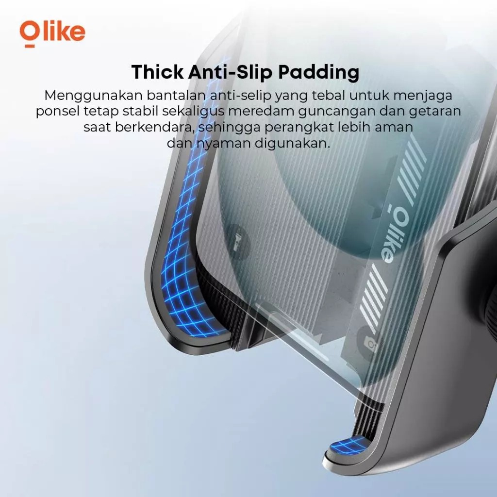 Thick Anti-Slip Padding: Lapisan bantalan anti-slip tebal membantu melindungi smartphone dari goresan sekaligus meredam getaran saat berkendara.