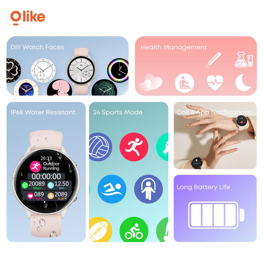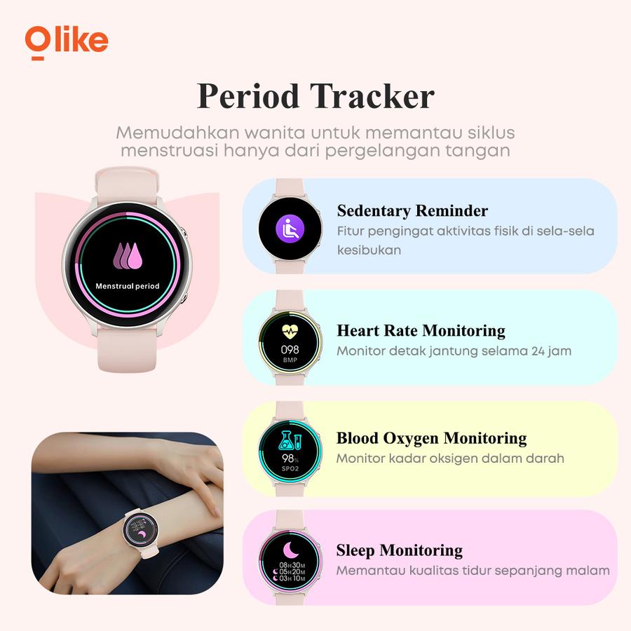 OLIKE Smart Watch Wanita FW1 Custom Watch Face Touch HD Diplay 1.28 Inch Strap 20mm | Water Resistant IP68 | Smartwatch Health Sport | Jam Tangan Wanita - Garansi 1 Tahun
