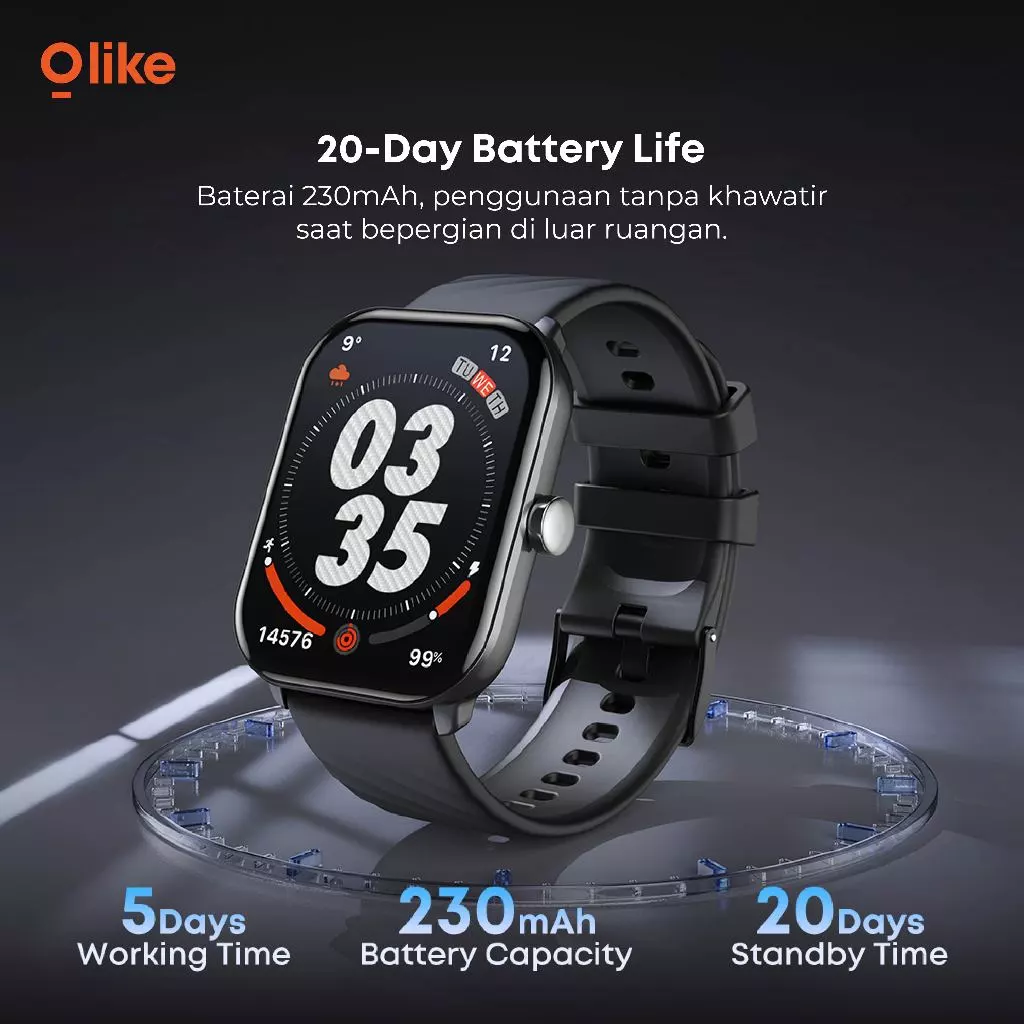 4. Waktu Standby 20 Hari: Baterai awet dengan standby hingga 20 hari dan penggunaan aktif hingga 5 hari.