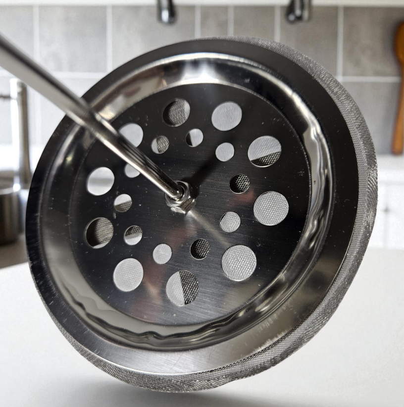 Filter bawaan dari material stainless steel menghasilkan seduhan kopi dengan kualitas tinggi. Teknik french press dapat mengekstrak seluruh kandungan minyak alami pada kopi yang menghasilkan cita rasa terbaik. 3 Lapis filter mencegah adanya ampas yang tertinggal saat bagian menyaring bubuk kopi.
