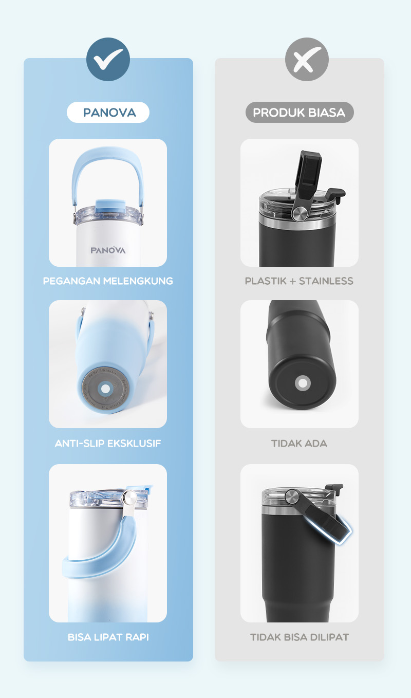 Dilengkapi dengan desain ergonomis yang nyaman digenggam, PANOVA Cups BTE41206 mudah dibawa ke kantor, kampus, sekolah, gym, hingga saat traveling. Material premium dan konstruksi yang kokoh membuatnya lebih awet dan tahan lama untuk penggunaan jangka panjang.