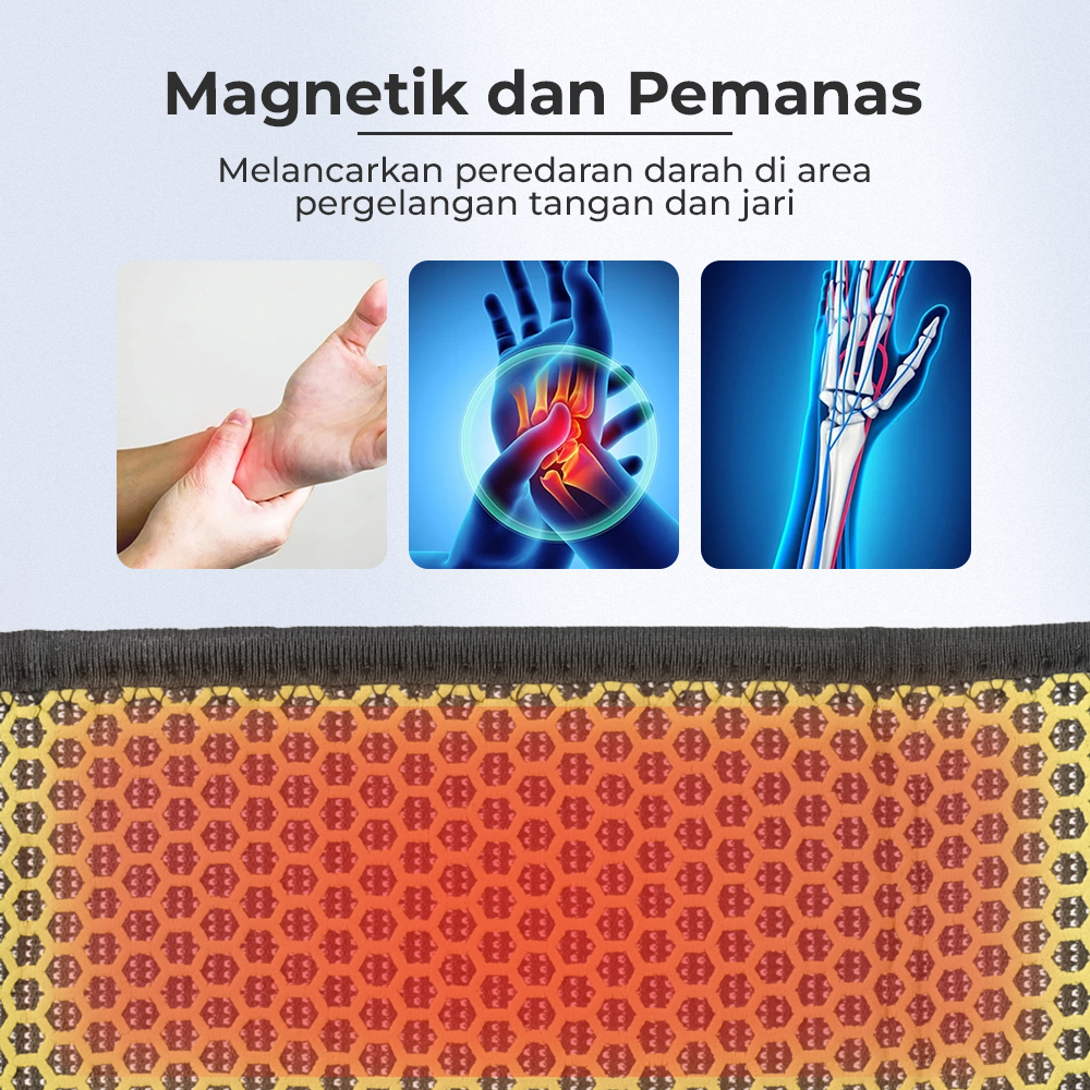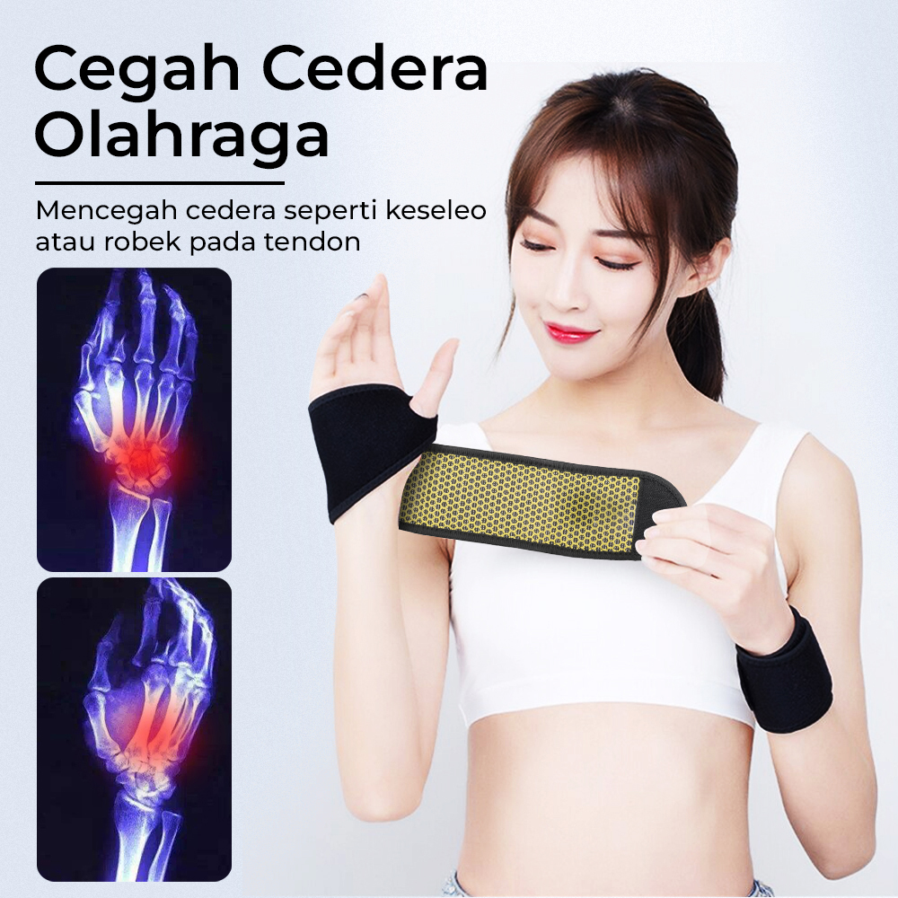 Lebih dari sekedar melindungi, pelindung pergelangan tangan dibekali dengan magnetik dan kemampuan untuk menghasilkan sensasi panas. Peredaran darah di area pergelangan tangan dan jari pun akan semakin lancar sehingga dapat meredakan nyeri atau bengkak.