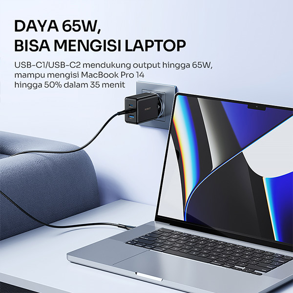 Desain minimalis dan portabel membuat ROBOT GaN 65W GC04 mudah dibawa ke mana saja, ideal untuk penggunaan di rumah, kantor, maupun saat traveling.