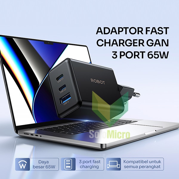 ROBOT GaN 65W GC04 adalah solusi charger cepat, aman, dan serbaguna untuk kebutuhan charging modern.