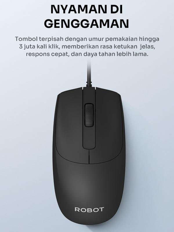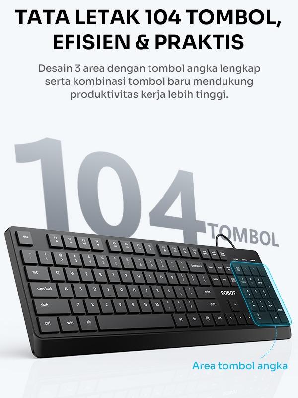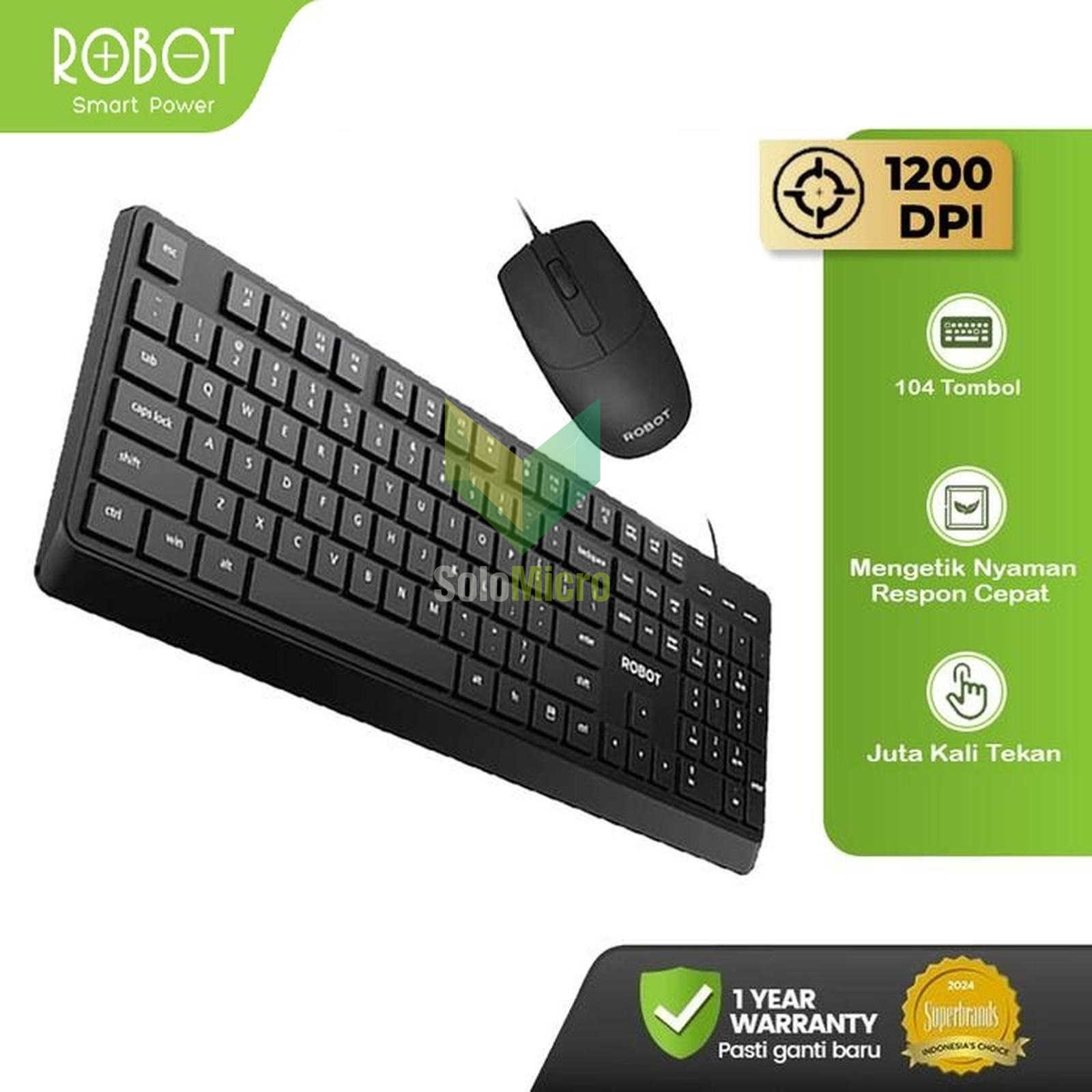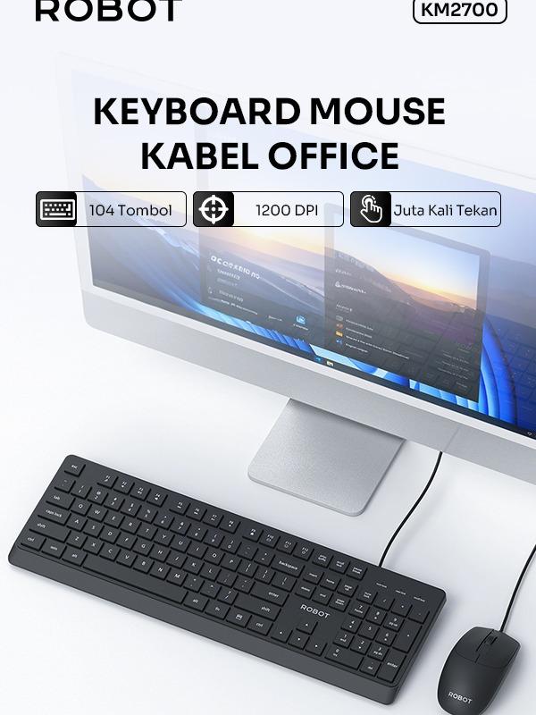 ROBOT KM2700 adalah combo keyboard dan mouse kabel yang dirancang untuk kebutuhan kantor, sekolah, maupun penggunaan sehari-hari. Dengan desain ergonomis dan material berkualitas, perangkat ini memberikan kenyamanan mengetik dan presisi saat mengoperasikan mouse.