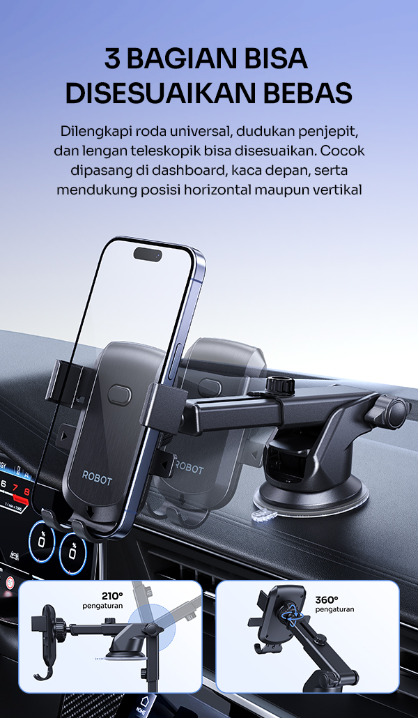 Sangat ideal untuk dipakai saat menggunakan Google Maps, Waze, Spotify, atau aplikasi lainnya selama perjalanan. Dengan ROBOT RT-CH20S, semua jadi lebih aman, rapi, dan nyaman