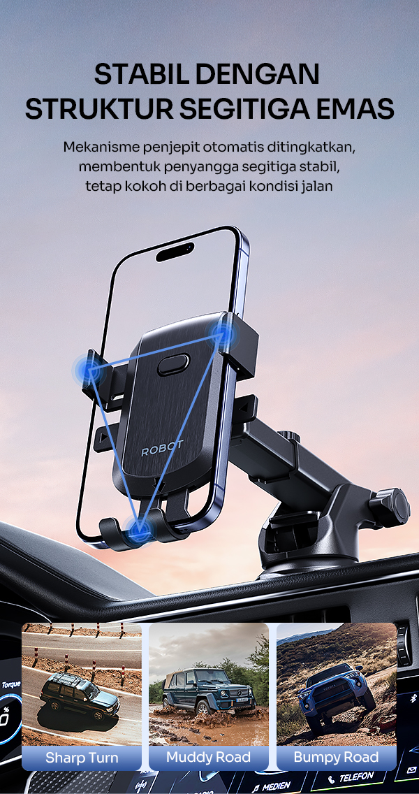 Genggaman Kokoh & Anti Guncangan – smartphone tetap stabil meski melewati jalan rusak.