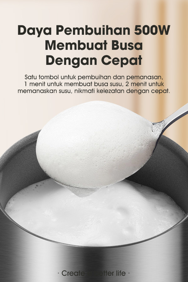 - 4-in-1 Multifungsi: Membuat 3 jenis busa susu (halus, tebal, dan dingin) serta fungsi pemanas susu.