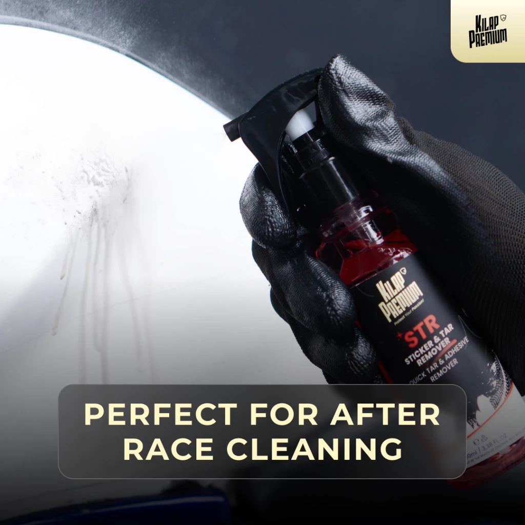 v PERFECT FOR AFTER-RACE CLEANING - STR juga mampu menghilangkan noda aspal yang bandel pada permukaan kendaraanmu yang biasa ditemukan setelah melewati aspal jalan yang masih baru ataupun aspal sirkuit! Cocok banget buat post race treatment!