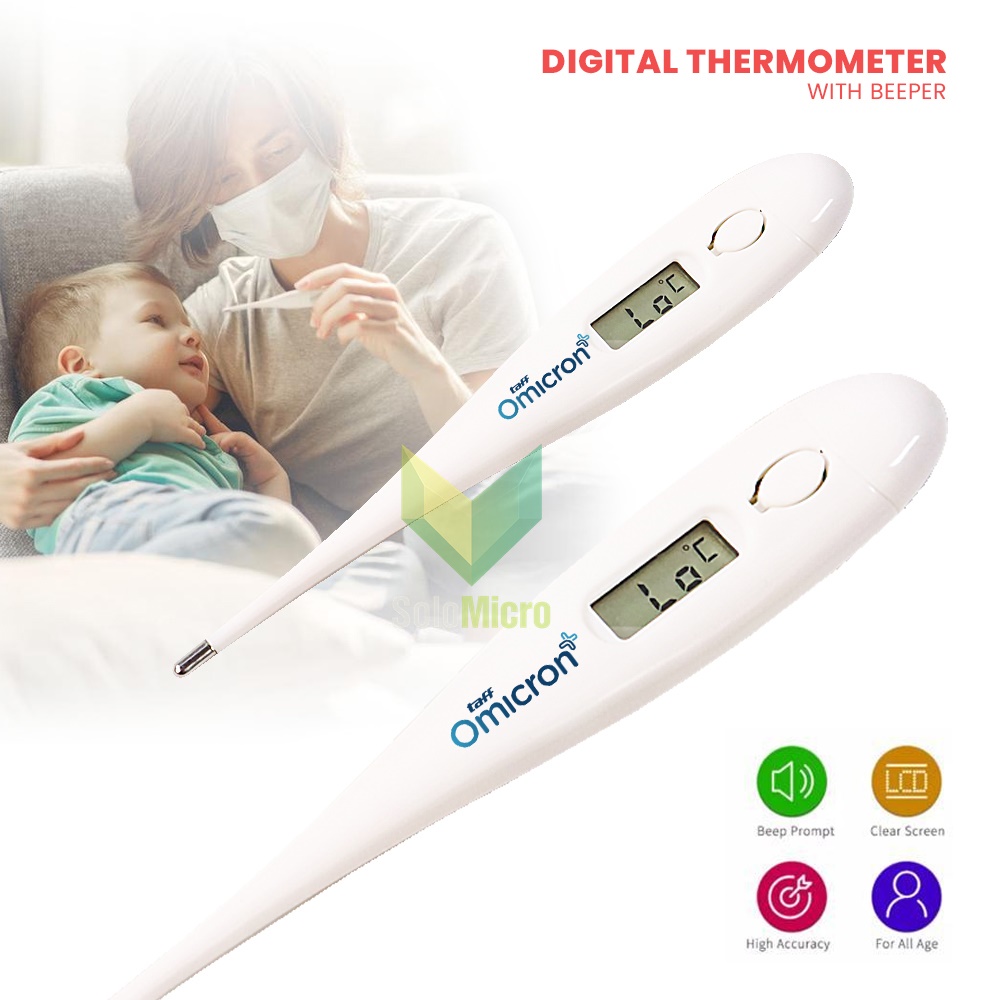 Termometer ini biasa digunakan untuk mengukur suhu badan. Alat ini sangat mudah digunakan, dengan menempelkan besi pengukur ke tubuh Anda guna mendapatkan suhu tubuh Anda. Setelah menempel dengan durasi waktu tertentu, suhu akan tampil di layar digital. Terbuat dari bahan plastik berkualitas yang ringan namun kokoh, sehingga awet untuk penggunaan jangka panjang.