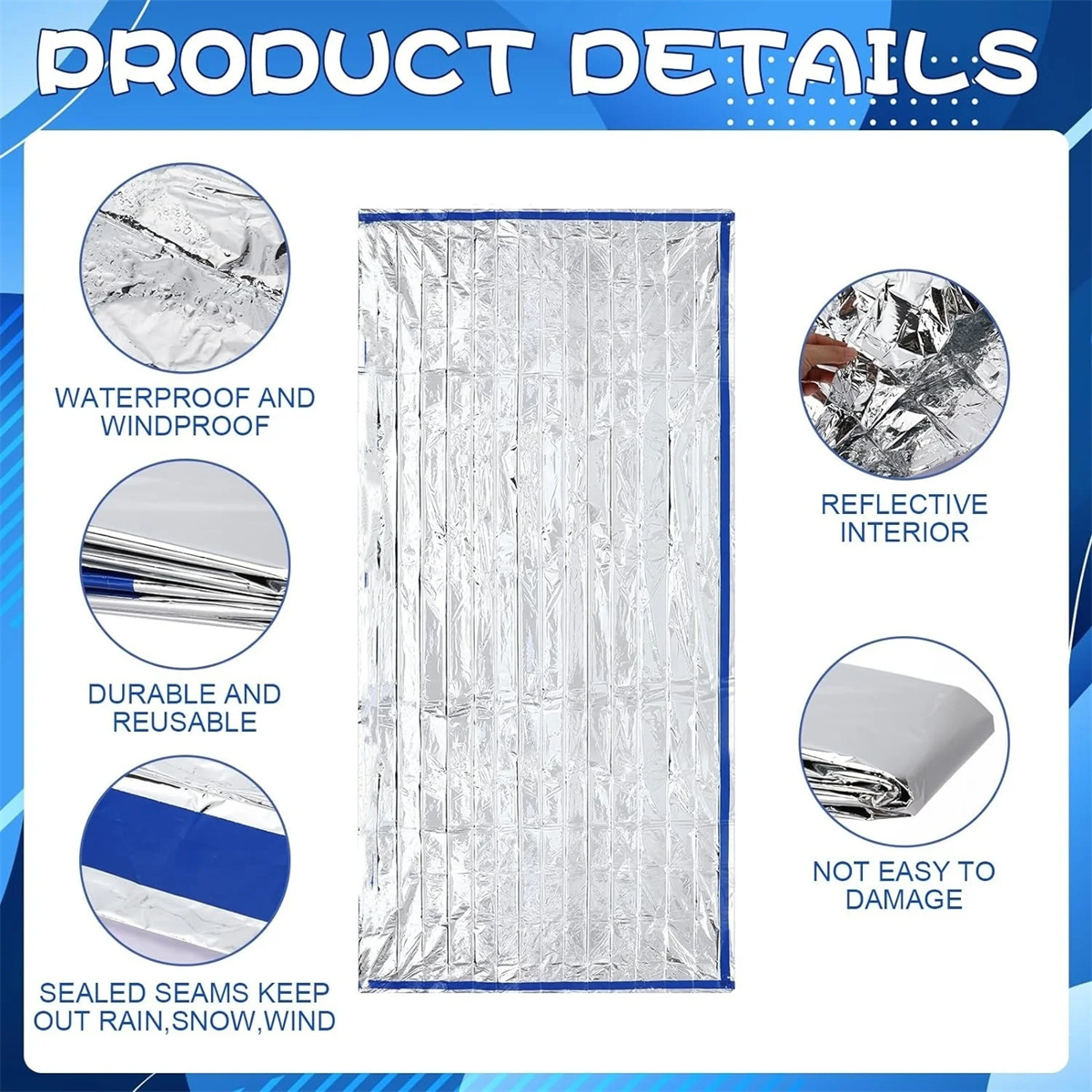Bahan Reflektif, Tunjang Visibilitas Material PE berlapis aluminium yang digunakan juga memiliki karakteristik reflektif. Selimut darurat pun dapat memantulkan cahaya di saat gelap. Hal ini dapat meningkatkan visibilitas keberadaan atau posisi Anda. Selain menjamin keamanan, unsur reflektif juga membuat Anda mudah ditemukan di saat darurat. |