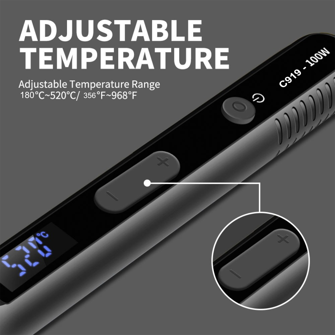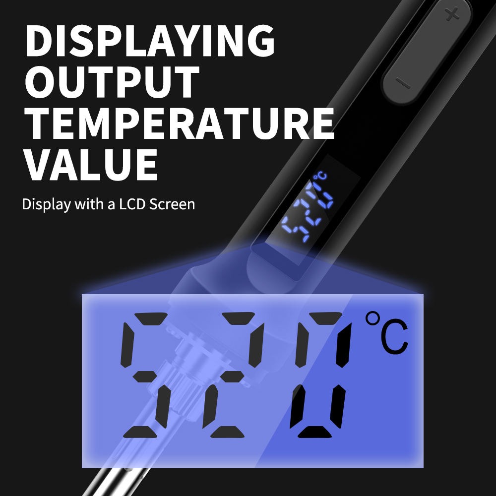 Pengaturan Temperatur Solder Taffware dapat menghasilkan suhu tinggi mulai dari 180 ℃ hingga 520 ℃, jauh lebih fleksibel dibanding solder elektrik biasa. Suhu bisa diatur dengan mudah melalui tombol di bodi solder, sementara layar LCD menampilkan suhu secara jelas dan akurat. Anda bisa menyesuaikan temperatur sesuai kebutuhan proyek penyolderan yang sedang dikerjakan. |