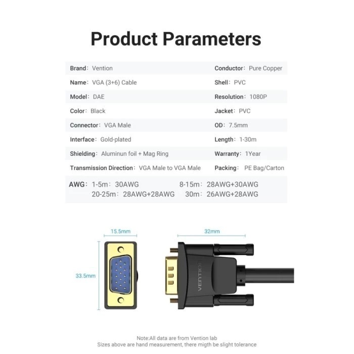 Kabel VGA VENTION dirancang dengan kualitas yang tinggi yang dapat memberikan dampak yang maksimum pada media anda.