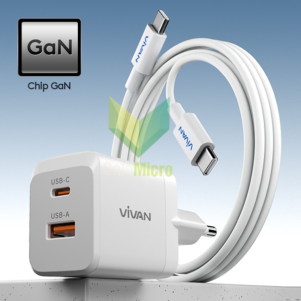 Vivan GAN Charger C45 45W dengan Kabel Type-C to Type-C