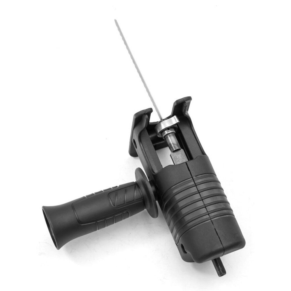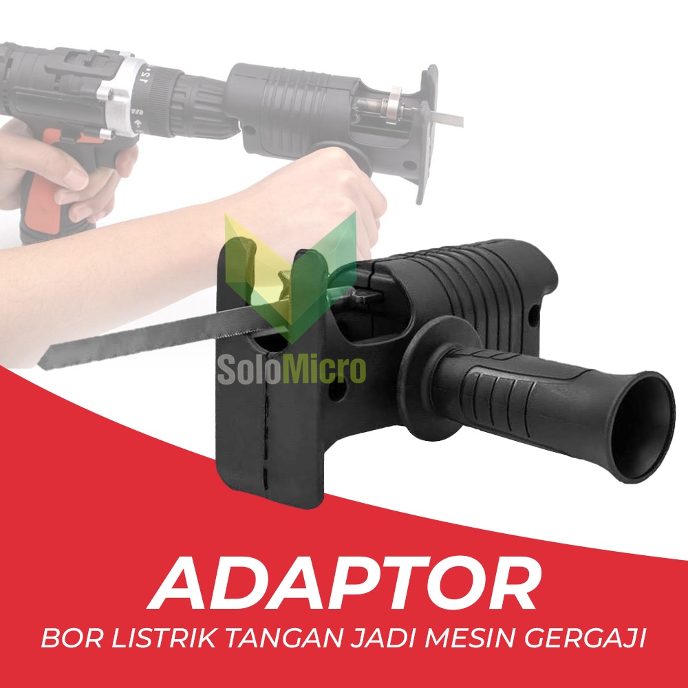 Adaptor ini akan mengubah bor listrik tangan Anda berubah fungsinya menjadi mesin gergaji potong elektrik. Anda tak perlu membeli alat gergaji mesin terpisah untuk keperluan tukang Anda. Alat ini belum termasuk dengan mesin bor, gunakan mesin bor yang ada di rumah Anda.