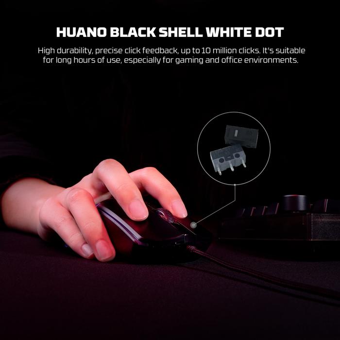 Crypto II Wireless WG7V2 dilengkapi dengan switch Huano Blue Shell White Dot yang tahan hingga 20 juta klik. Mouse ini ideal untuk penggunaan jangka panjang, baik saat bermain game atau bekerja.