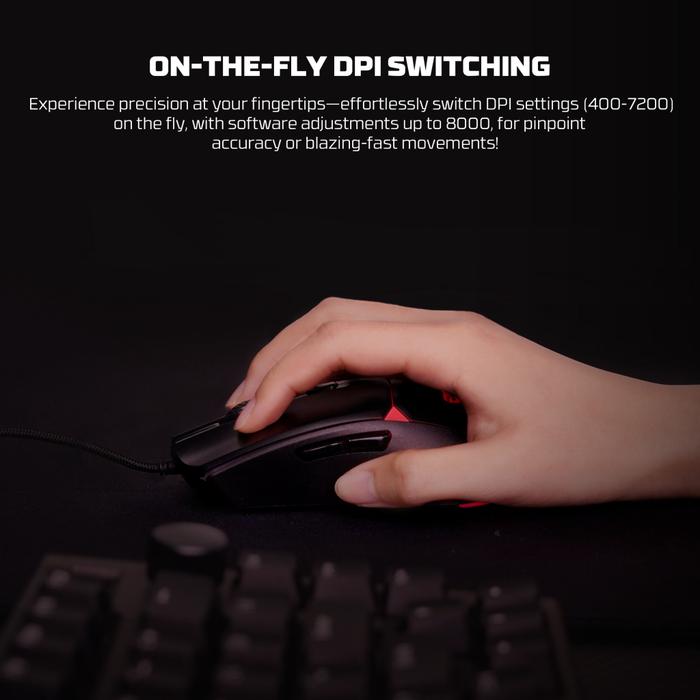 Mouse ini memiliki desain Symmetrical Shape yang nyaman dan mendukung barbagai tipe genggaman, seperti Palm, Claw, dan Fingertip grip. Dengan bentuknya yang simetris, mampu mendukung genggaman lebih stabil untuk kenyamanan maksimal setiap sesi permainan.