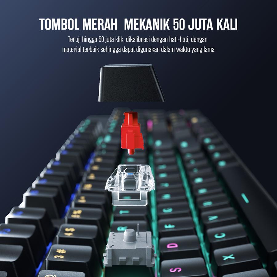 1. Mechanical Linear Red Switch, tombol yang kuat dengan ketahanan 50 juta kali