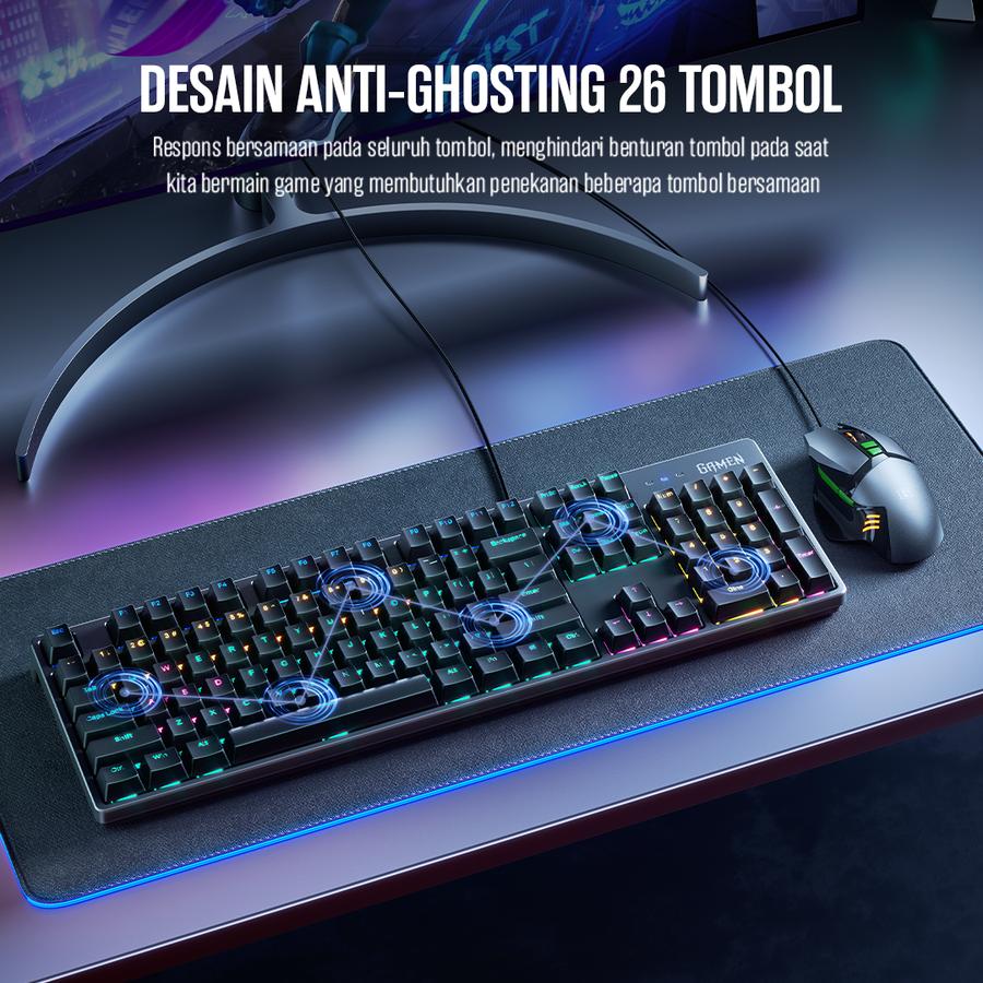 6. 26 Key Rollover, Menekan 26 tombol secara bersamaan anti ghosting untuk performa permainan yang lebih baik