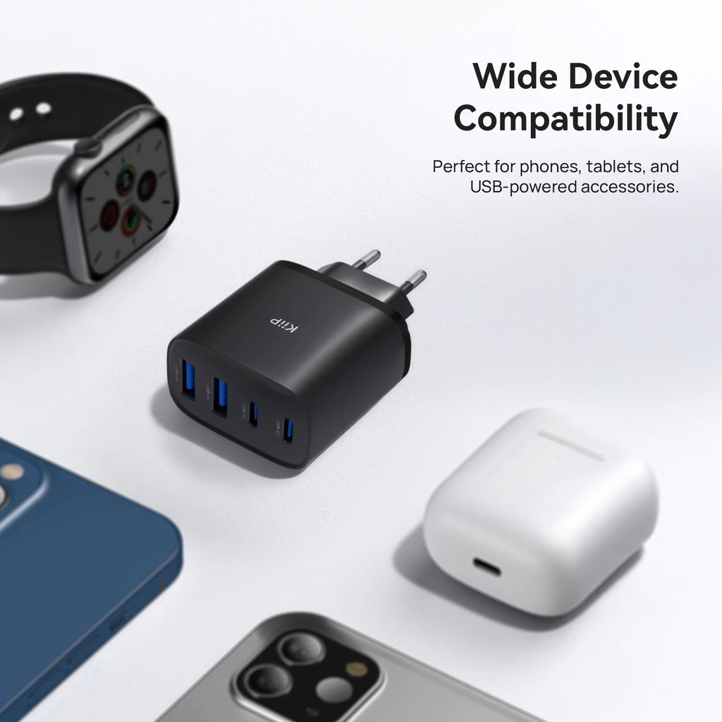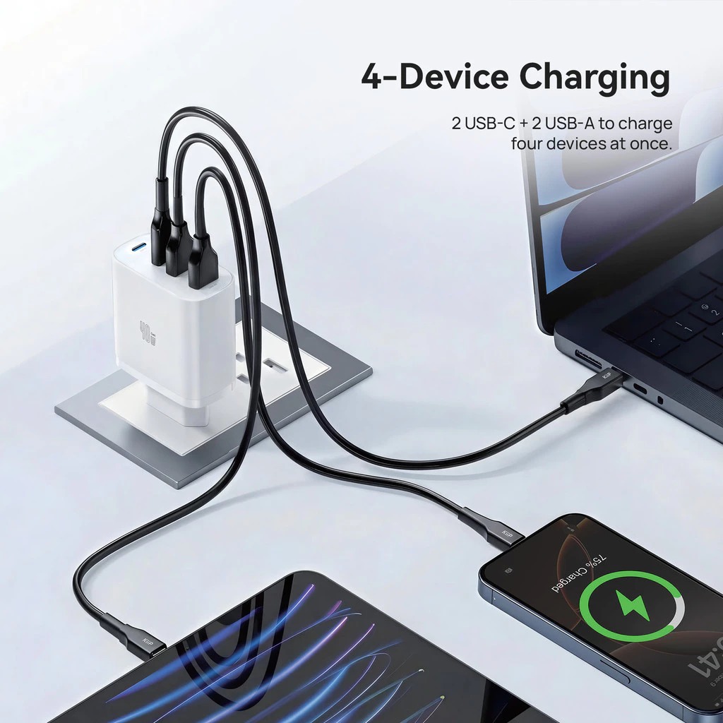 Bisa mengisi hingga 4 perangkat sekaligus dengan 2 port USB-C dan 2 port USB-A.