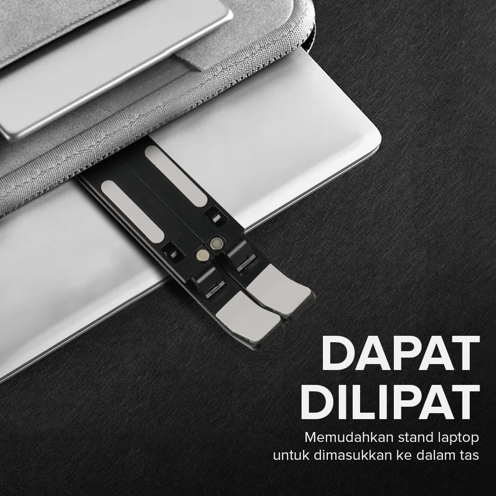 Stand laptop aluminium ini tahan panas, ergonomis, dan mudah dilipat. Cocok untuk laptop 12-16 Inch, menjaga performa tetap optimal dan nyaman digunakan di mana saja.