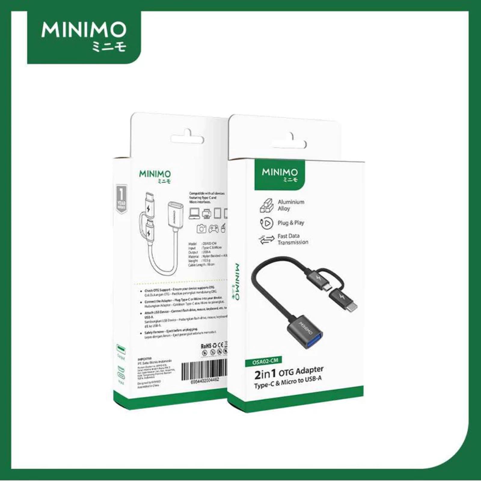 MINIMO OSA02-CM adalah solusi praktis dan ringkas untuk menghubungkan berbagai periferal USB standar (USB-A male) ke perangkat seluler Anda yang memiliki port Micro USB atau USB Type-C. Adaptor multifungsi 2-in-1 ini menghilangkan kebutuhan untuk membawa dua adaptor terpisah, menjadikannya aksesori perjalanan yang ideal.