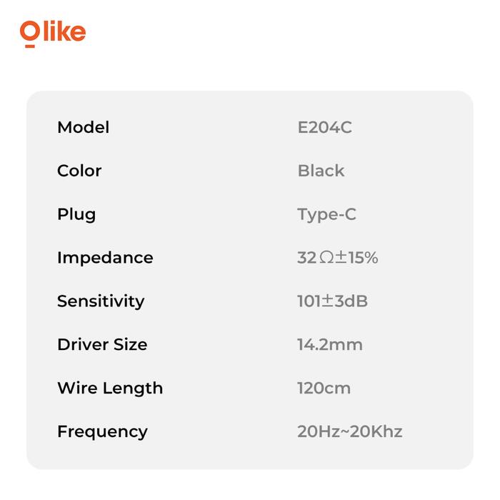 OLIKE E204C Headset Type C Wired Earphone Type C