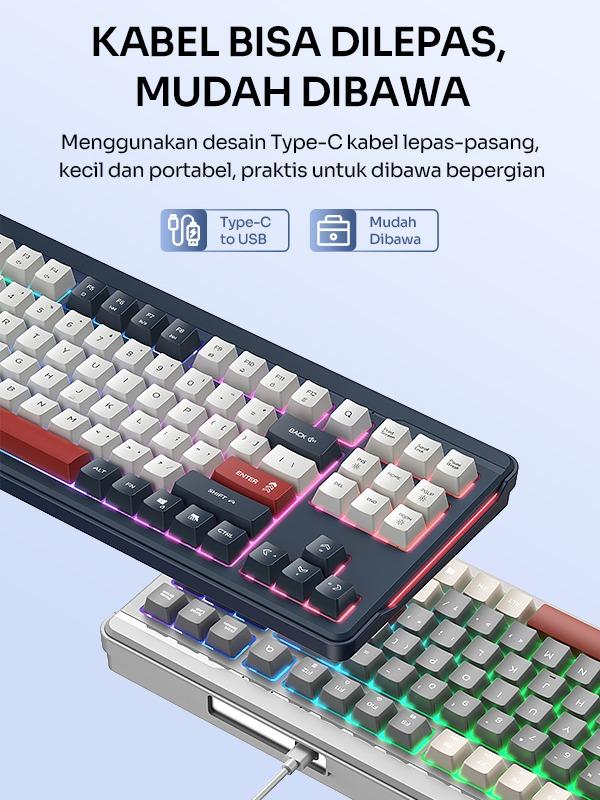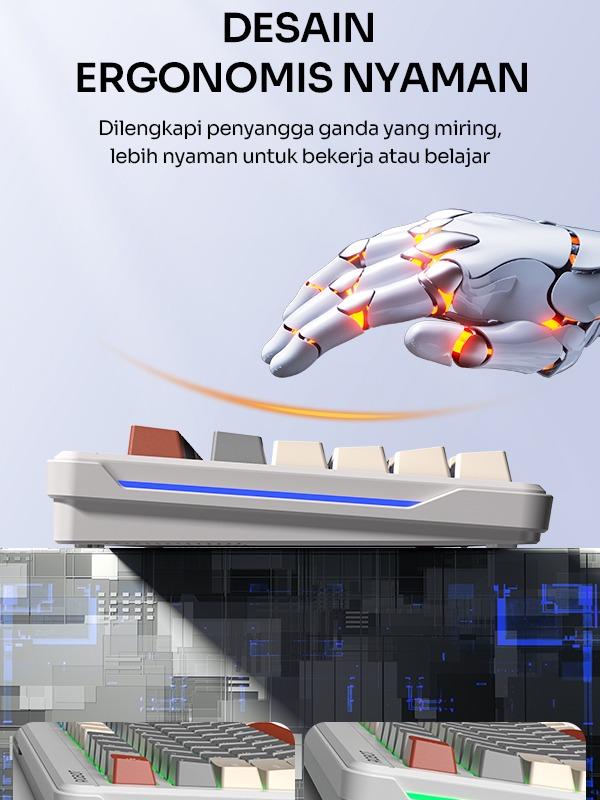 Rainbow BacklightFitur rainbow backlight menambah estetika dan kenyamanan saat digunakan. Lampu berwarna-warni ini membuat tampilan keyboard lebih menarik. 🌈