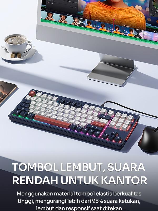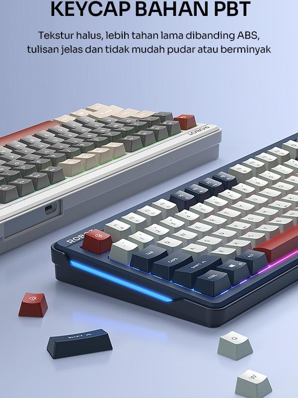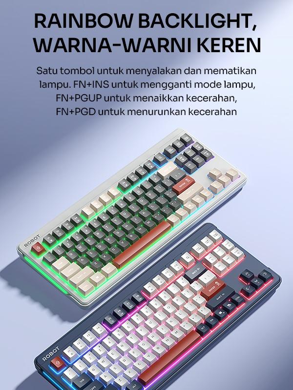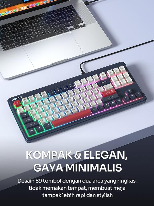 ROBOT RK50 Membrane Keyboard adalah pilihan tepat untuk pengguna yang menginginkan kenyamanan dan desain kompak. Dengan 89 key PBT keycaps, keyboard ini menawarkan tombol yang lembut. 🖥️