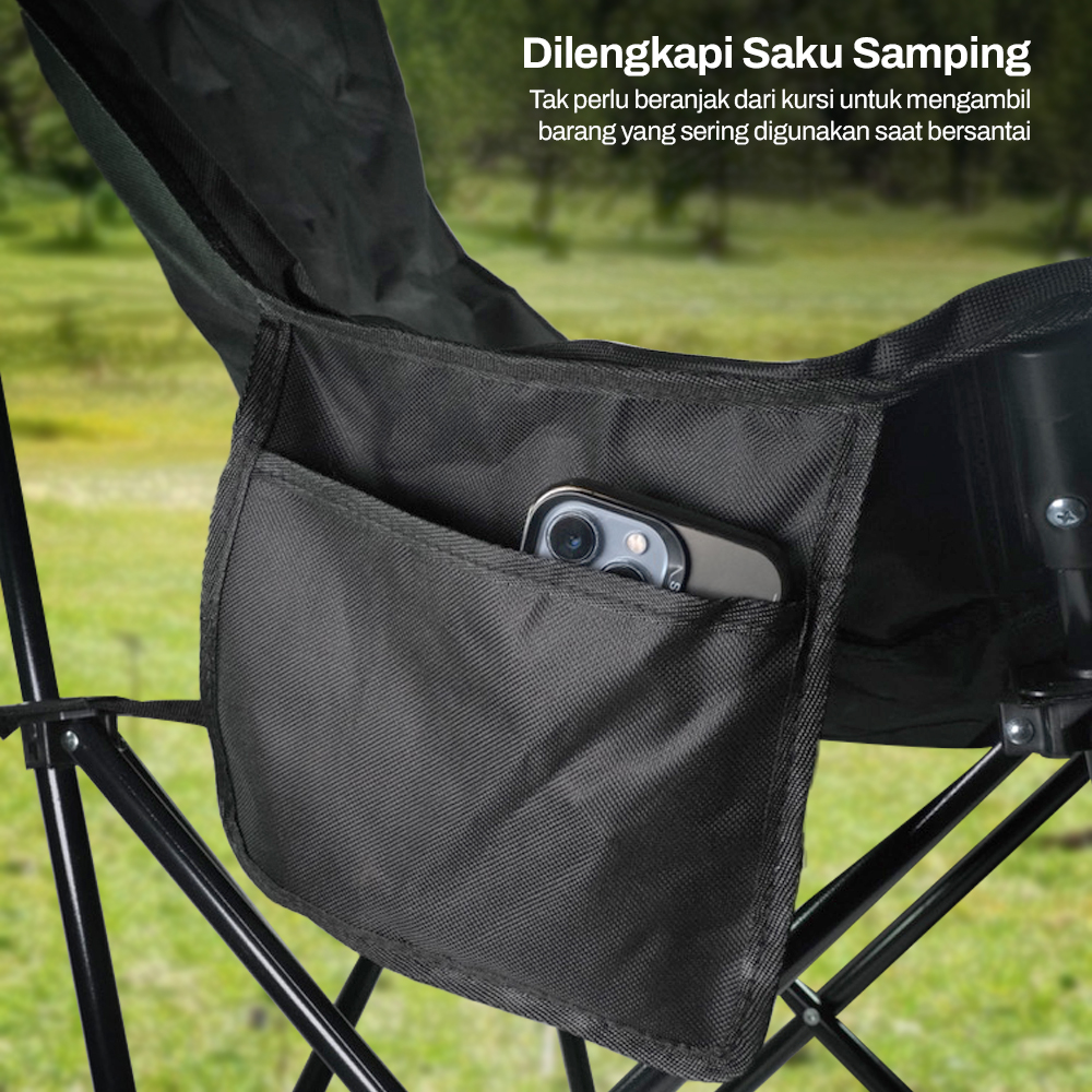 Material Kokoh dan Awet Fitur lipat tidak membuat kursi outdoor ini menjadi ringkih. Kombinasi rangka besi dan kain oxford membuat kursi mampu menahan bobot orang dewasa, tidak mudah robek, serta menapak kuat di mana pun Anda letakkan. |