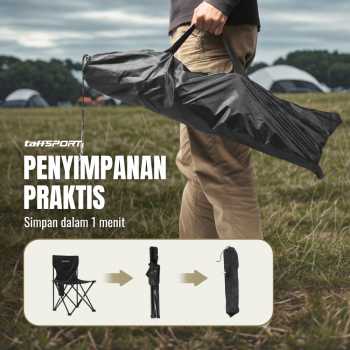 Penyimpanan Praktis, Tanpa Ribet Setiap pembelian kursi lipat ini sudah disertai dengan tas penyimpanan khusus. Tas ini membuat proses membawa, menyimpan, hingga merapikan kursi jadi lebih cepat dan rapi. |